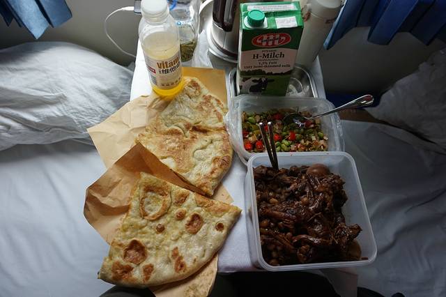 这是我们在西安火车站买的饼,旁边是老公卤的菜,好吃的啦