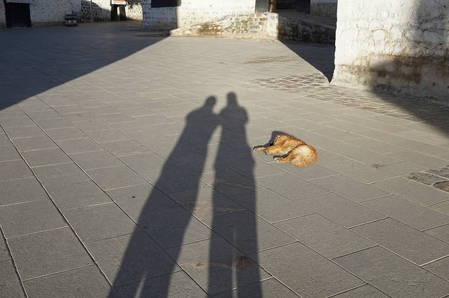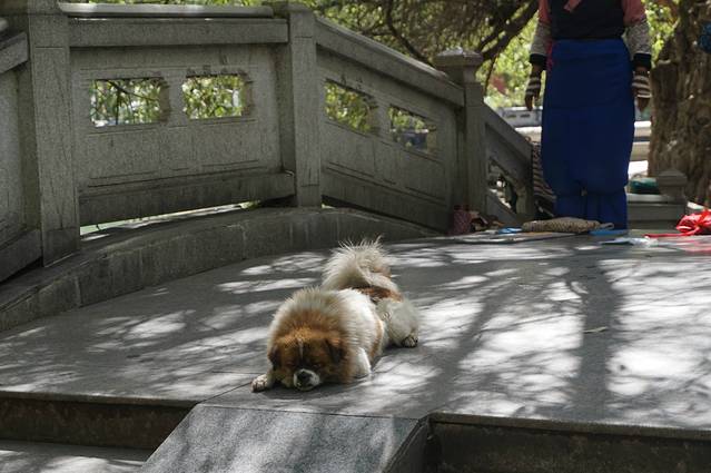 在藏区到处都是流浪狗,看它多惬意,看我俩的大长腿