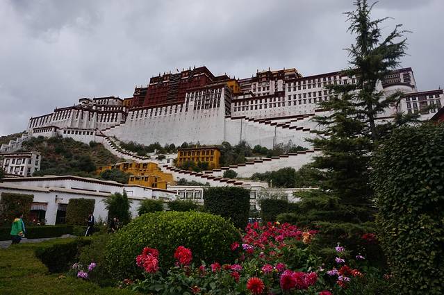 进入到布宫里面,在山脚下有美丽的花,映衬的布宫更漂亮