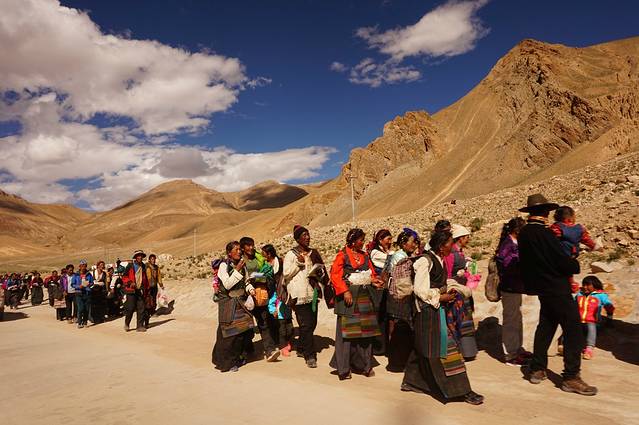 沿途的藏民,今天巧遇小班禅也在,藏民们都是在等着朝拜他的。我们被请到一边等着他的车队过去后才给通行的。