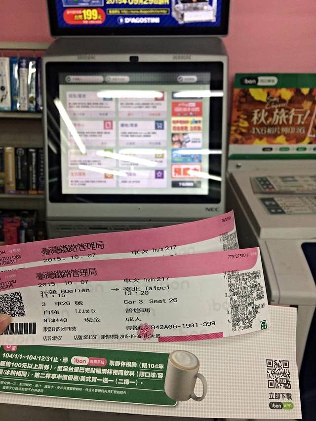 一日游结束,师傅根据我们的意愿送到自强夜市。第一件事是去7-11付款取明天花莲-台北的火车票。可以在台铁官网订好火车票然后在当天24点前去火车站或者便利店付钱就能取票啦,认的是订票时候输入的证件号!便利店会加收8台币一张的手续费,还是很公道的,毕竟方便好多!