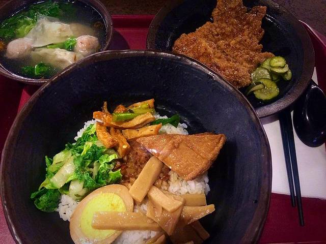 咸豆浆+厚烧饼油条,80台币。咸豆浆结块像豆腐脑,厚烧饼闲中带甜,油条很松脆。平时上班都能买到的传统早点,竟然能做到如此美味,不枉排队呢。