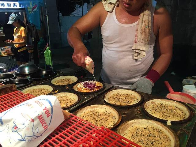 自强夜市是我去了这么多夜市最火爆的!它算蛮小的夜市,但超多明星摊位,那叫一个大排长龙!等30分钟都不算多,还好我们到得还算早^_^第一家烧烤,足足等了45分钟,不过可以填好东西付了钱领了号码牌先去吃别家!
