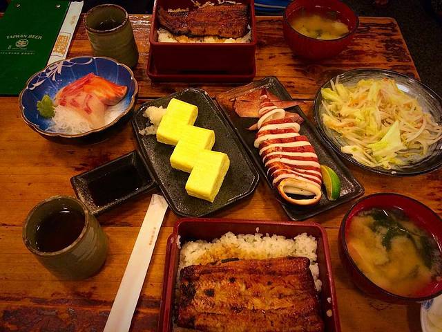 A飞是食物拍照摆盘高手!等菜全部上齐拍了照再开动,绝对专业ฅ՞•ﻌ•՞ฅ这边的鳗鱼是全台北最新鲜的,因为老板是调配鳗鱼协会的理事长,恩,好像是这么说的!因为后来一路都是他带我走,所以都没有记路线。这家店是在中山北路,捷运站是中山站。