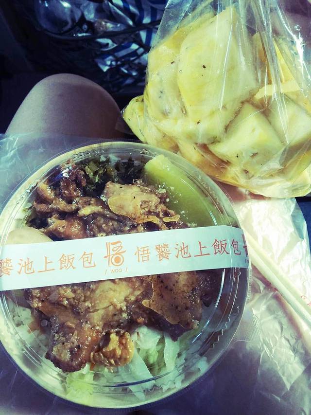 山贼烤鸡腿饭,90台币,一包凤梨,50台币,给力给力!