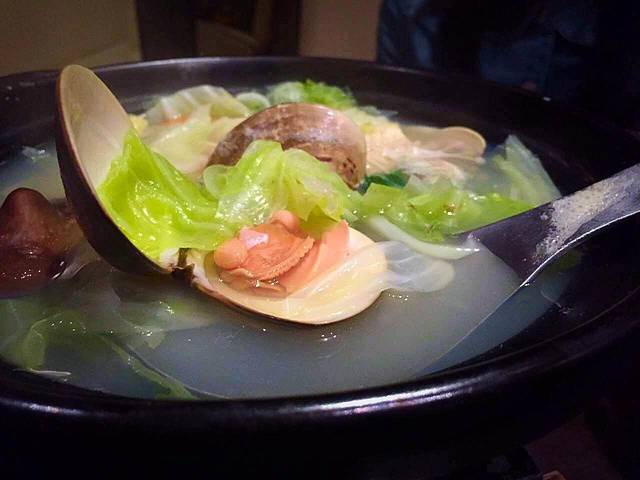 这一锅大蛤蜊汤要隆重推荐一下,蛤蜊肉超厚实美味,一嚼就明白食材有多棒,整锅汤略清淡,但肯定没有额外的佐料哦(๑′ڡ`๑)