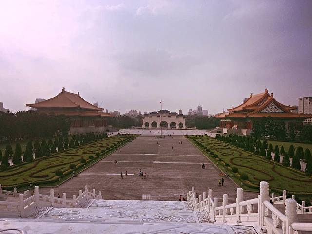 整个中正纪念堂鸟瞰图,连着自由广场,有兴趣的同学可以来看升旗降旗仪式=_=左右两边建筑是剧院和音乐厅。