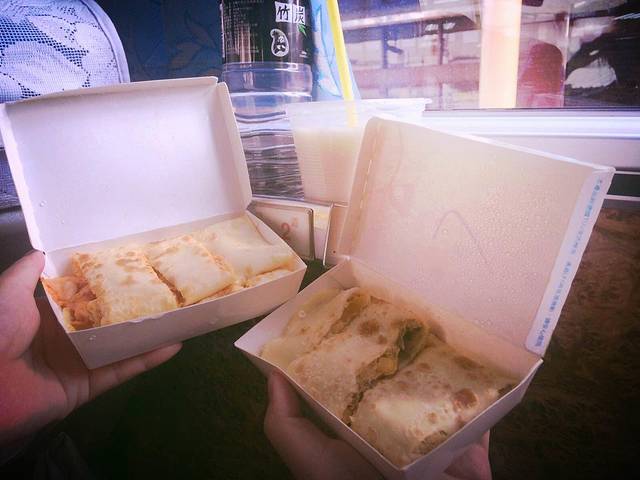 沿途有经过基隆,后半段山路相当曲折,九曲十八弯一点都不夸张,每一个都是大拐弯,至少300度啦,好拼的感觉!迅速解决一顿台式早餐,味道很本土。
