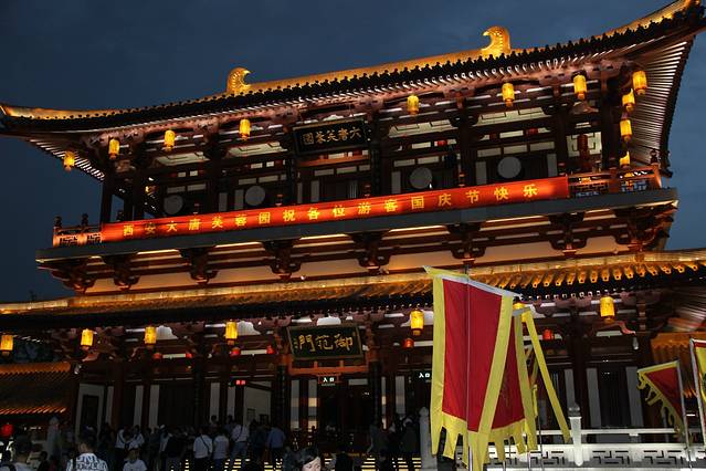 第三天,本打算晚上去爬华山,谁知道早上醒来,新闻说华山大风很多人被困到山上,停止售票,我家从新计划去了大唐芙蓉园——虽然去过苏州园林,西溪湿地的公园,到了发现,这个地方很值得一去,既保留了以前的文物古迹,又不缺少现代的文化气息!整整逛了五个小时,夜景很美。吃过晚饭直奔青旅,刚好好有两个女孩也回来,我们几个人便一起聊天,后来老板说晚上开party出去买完吃的就开始了我们的玩耍夜生活,好多人一起聊天玩游戏到凌晨一点多,完后乐乐呵呵开开心心的就睡了。