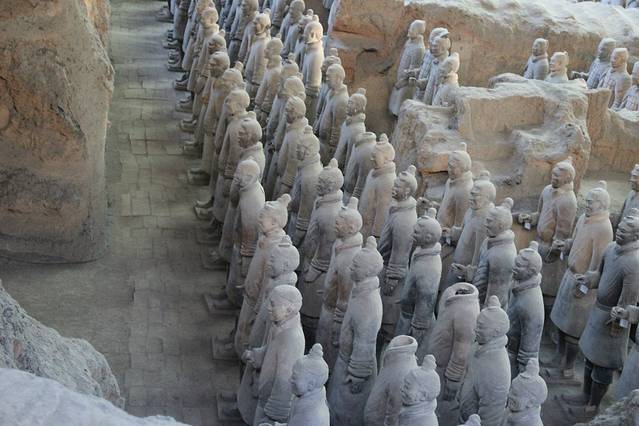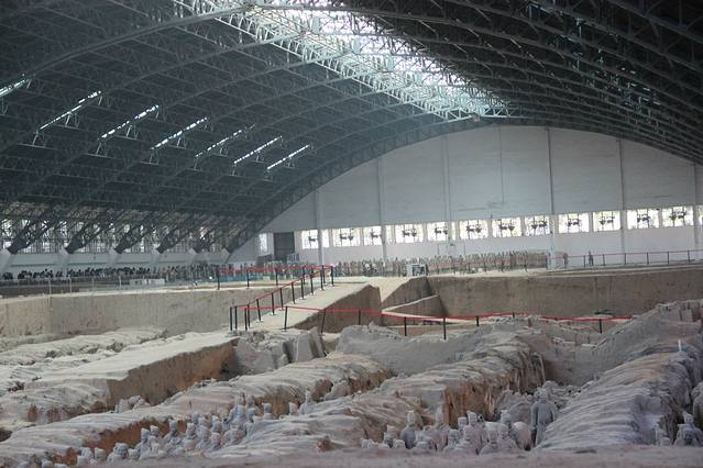 第二天,我们去了兵马俑,只为亲临现场,目睹一下佣的壮观,在火车站坐306两个半小时到了地方(由于人太多没有排座位)一路站着,到了之后真的想直接回来算了,腿酸的吖~正好也饿了,吃了凉皮,买了石榴。就开始了游览,分别去看了一号坑二号坑和三号坑,还是很兴奋的,只是人流太拥挤。买票的地方快赶上春运火车站了。回来后超级有战斗力的我们去了回民街,游客必去的地方,虽不奢华,很有人文气息,只是吃了饭吃不下小吃了,喝了杯酸奶,还不错滴,从头走到尾也快要累瘫了。直接打的回去了,开始倒头大睡。