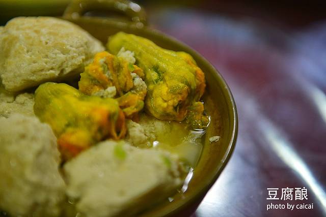 水豆腐酿外色金黄,肉白滑嫩,被誉为“金包银”,传说是古时朝廷贡品。瓜花酿在贺州非常有名,即可清蒸也可水煮,其口感香滑鲜嫩,清甜爽口,饱食不腻,是贺州酿文化的绝佳体现。