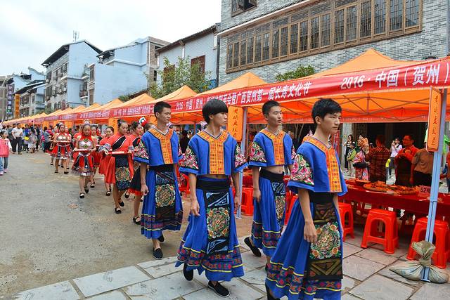 长寿文化节的重头戏就是簸箕宴。这一天,人们脸上总是溢满着幸福的笑容,敲锣打鼓举镇欢庆,300多席长桌宴,摆满整整几公里,古镇会杀鸡宰猪拿出最好的食物,邀请上村里的长寿老人,热情地欢迎新到的客人,让优良的贺州文化更好的传承下去。