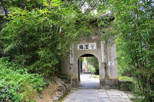 黄姚古镇的众多门楼之中,其中“亦孔之固”,建于清初,“亦孔之固”门意为虽系一孔之大,但是“一夫当关,万夫莫开,固若金汤”!门上的方孔为瞭望孔,两侧的细长孔为射击孔。穿过佐龙亭再进入这道门,就正式进入了古镇内部,条条大道通往各个方向,黄姚所有的路口也极有特点,均为人字型或丁字型。