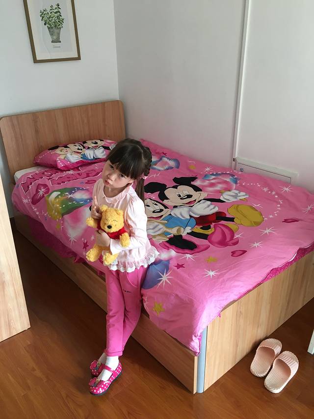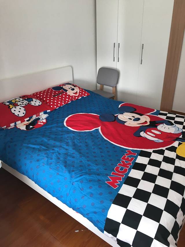 在网上搜索了好多迪士尼附近的宾馆酒店,迪士尼里面是有酒店的但是价钱大家可以去看一下一晚1499起价,而且看评价感觉不值这个价钱,当然会有一些附加的项目,我觉得我们主要是去迪士尼玩而不是在酒店玩,但是土豪可以略过我说的哈哈!最后我们选定的是离地铁站川沙站和迪士尼都比较近的上海吉米小屋公寓,上海浦东新区华夏二路1455弄心圆东苑,从火车站坐地铁2号线到广兰路站下车换乘2号线延长路往浦东机场方向到川沙站下车再打的10分钟就到了,到了跟房东联系,告诉密码就可以入住了,是一个小区公寓,两室一厅一厨一卫,很温馨,关键是迪士尼主题公寓,孩子一进门就被吸引住了,这里有个小插曲,本来我们定的是一室一厅的米妮梦幻房,是一张1.8米的大床,但是头一天被人把床睡坏了,所以我们只好订两室,感觉两室两床也很好,这样大家能好好休息互不干扰,开心说感觉就和在家一样!房价平日是378左右,节假日478左右,价位还是很合适的!楼下就有个小便利店,附近有家乐福超市,小区外有早餐店,小饭店很方便!