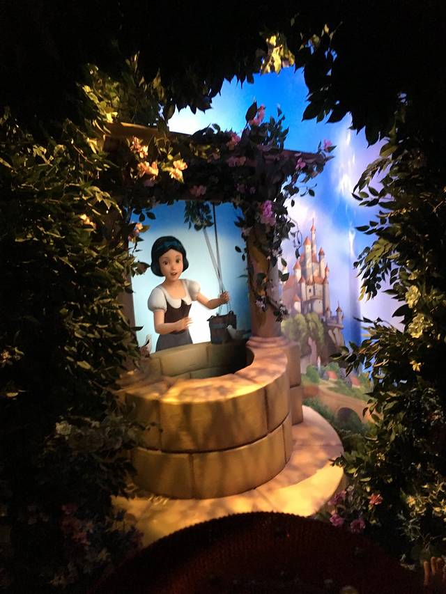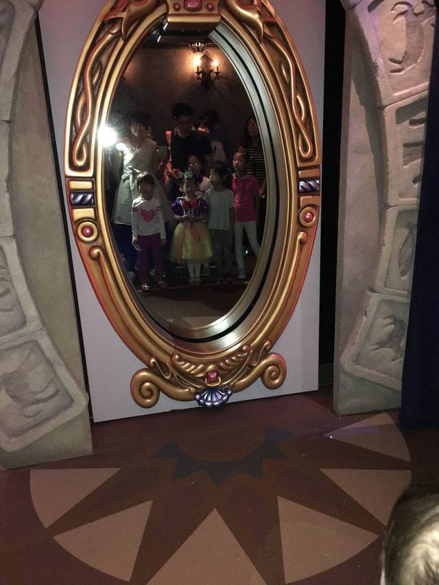 第一站,我们先去的是梦幻世界的“漫游童话时光”大约排了有二十分钟,进入城堡以后沿着城堡旋梯蜿蜒而上,进入白雪公主令人难忘的充满互动的世界,据说是用4d裸眼技术呈现整个故事