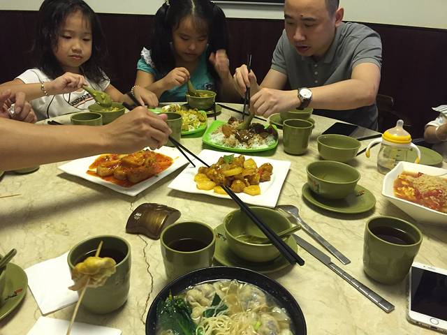 在中华城随便吃点,小宝手心发热,整个心都吊起来了,食欲全无,瞧,吃个饭人都跑光了,真是称职的宝爸宝妈