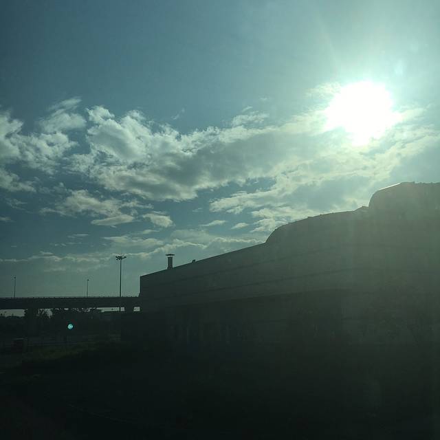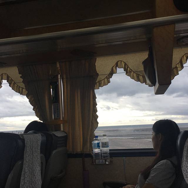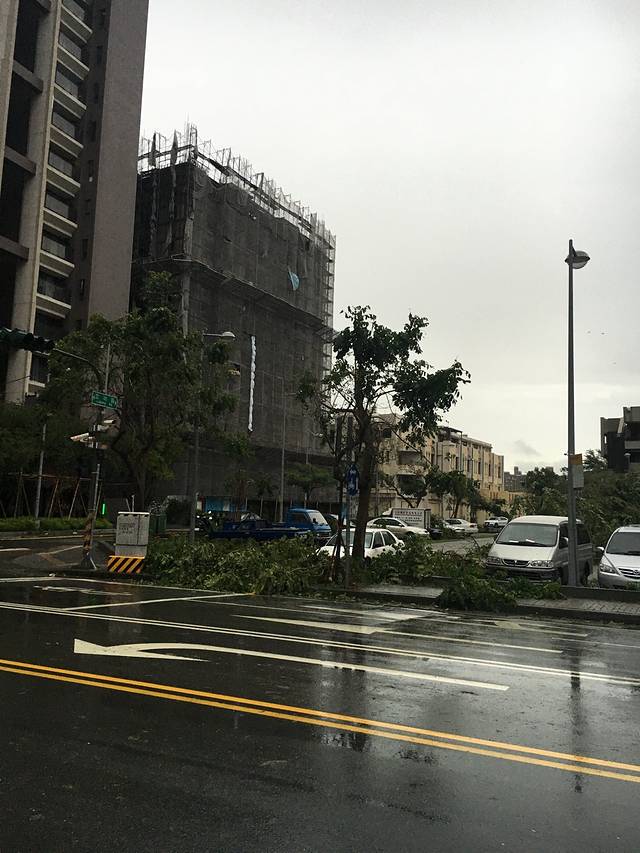 去往台中的路途中,被台风刮走的车顶盖以及坐在车上都可以听到台风呼啸的声音,整个车在行驶过程中都是摇摆不定,真佩服司机开车的定力。