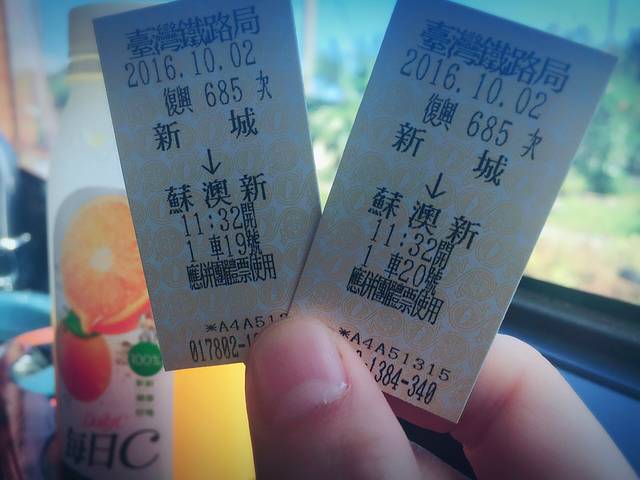 台湾的火车票是小只,而且不实名,舒适的座椅。