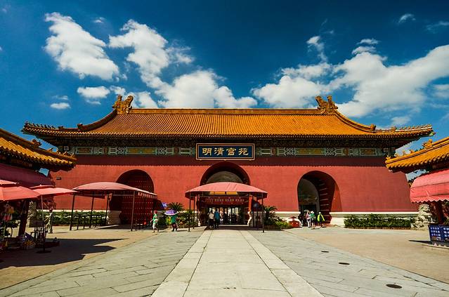 明清宫苑这个景区与北京的紫禁城按照1:1的模式复制而成的,步入其中以假乱真的意境真的误以为跨越了时间与空间来到了明清时期的北京紫禁城了,感觉非常的独特。