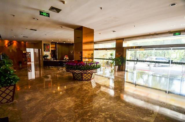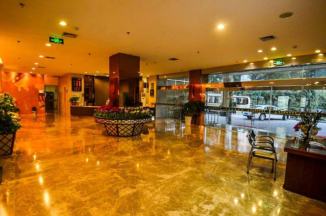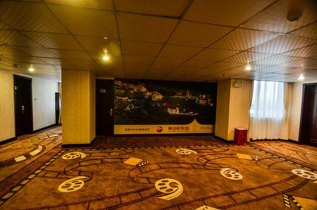 酒店的外观看起来很雄伟,在整个横店镇算是数一数二的高层建筑了。整栋大楼12层,其中第一层为公共区域,而2-12层则为客房。