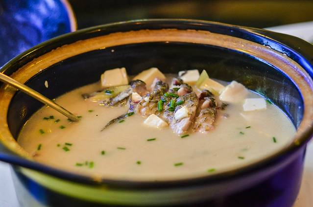 东阳本土的鲜嫩豆腐煮鱼头,味道爽到极点,汤醇味美。是横店影星酒店非常值得推荐的一道菜品。