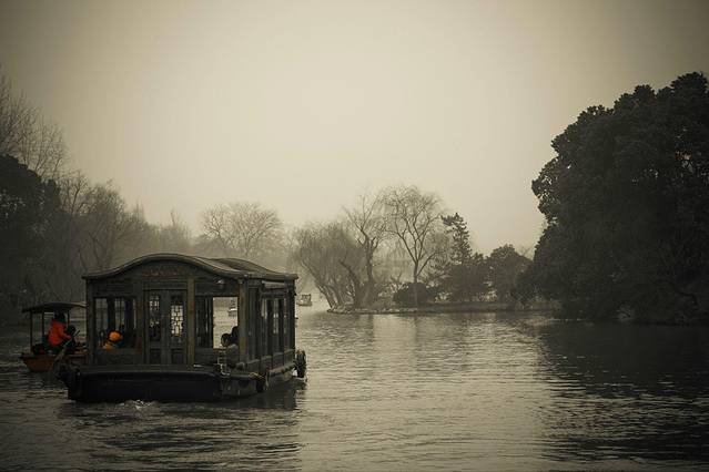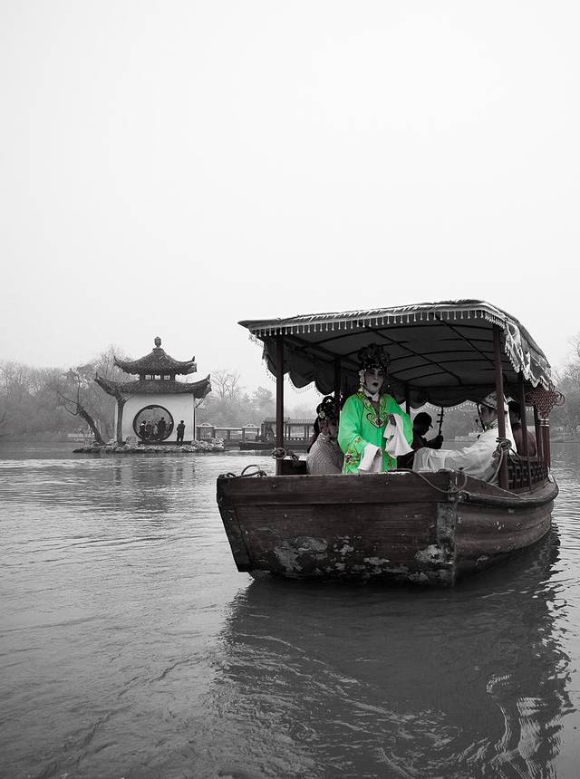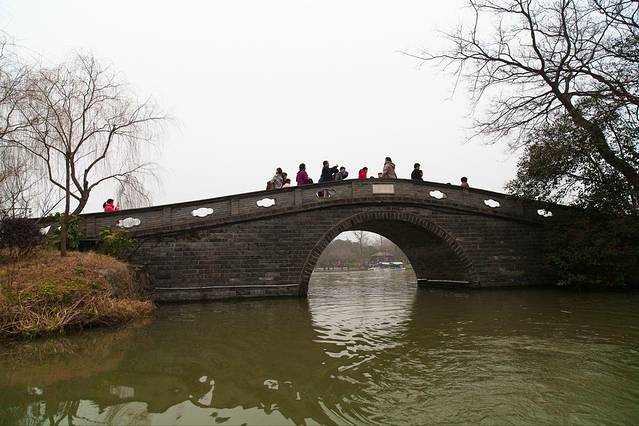 杨柳依依的"长堤春柳",相传是因为一对名叫长堤、春柳的青年男女的美丽爱情而得名的。春天的时节,这里一棵柳树夹一树桃花,充满了温馨的情意。湖上飘舞的柳絮,使人感到扑朔迷离,大概可以为李白诗句"烟花三月下扬州"中的"烟花"做一个注释吧?