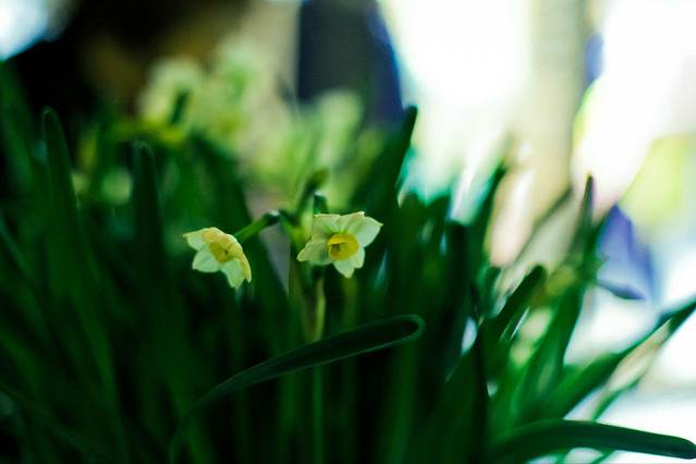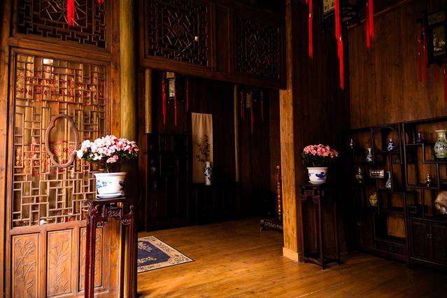随处摆放的一株水仙带来春的气息,与院内的亭相得益彰,脱凡超俗。