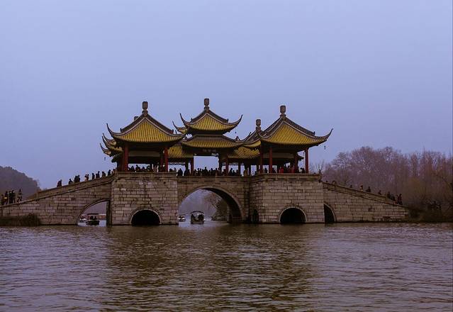 “天下西湖,三十有六”,惟扬州的西湖,以其清秀婉丽的风姿独异诸湖。一泓曲水宛如锦带,如飘如拂,时放时收,较之杭州西湖,另有一种清瘦的神韵。清代钱塘诗人汪沆有诗云:“垂杨不断接残芜,雁齿虹桥俨画图。也是销金一锅子,故应唤作瘦西湖。”瘦西湖由此得名,并蜚声中外