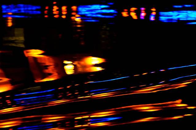 夜里坐游船行走在古运河里,岸边景观灯投映在水里,光波荡漾、似幻似真,别有一番风韵。