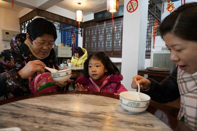 吹过了凛冽的寒风后,在小店里吃一碗热腾腾的小圆子,不失为取暖休憩的好办法。 •