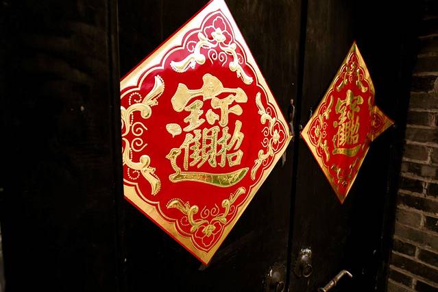 东关街是扬州城里最具有代表性的一条历史老街。街面上市井繁华、商家林立,行当俱全,生意兴隆。陆陈行、油米坊、鲜鱼行、八鲜行、瓜果行、竹木行近百家之多。现在以小吃闻名天下,可刚吃了午饭一点胃口也没有,于是慢慢与扬州的美食渐行渐远。居民家的大门都贴着大红的“招财进宝”红门脸。喜庆迎春!