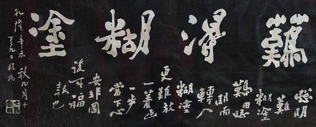 字画小字是:“聪明难,糊涂难,由聪明而转入糊涂更难。放一著,退一步,当下心安,非图后来福报也。” 清代书画家、文学家郑板桥题过几副著名的匾额,其中最为脍炙人口的是“难得糊涂”与“吃亏是福”这两副。而难得糊涂特指故作糊涂的态度和哲学。