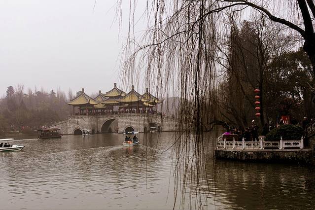 进入瘦西湖,满眼数不尽的锦绣风光,清水曲桥,细柳腊梅,湿润的雾气,摇桨的船夫,过往的行人,更难得可贵的是一份自由的心情——如同扇面一样精致的小景