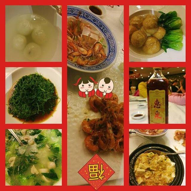 出园后原本打算去食为天,结果看到了掬花楼,担心像昨天一样晚上很晚还吃不到饭,决定吃自助餐了事。酒楼的环境到是布置的年味儿十足!