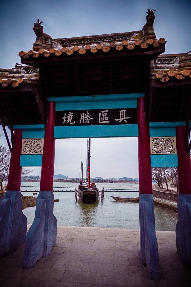 具区胜景牌坊码头,具区是太湖古称之一,这个码头是当初乾隆皇帝下江南,登陆的众多码头之一,也是徐霞客云游天下的出航地,牌坊前树立的是太湖石,为无锡特产,四大名石之一,也是唯一被用于园林假山布景的石头。