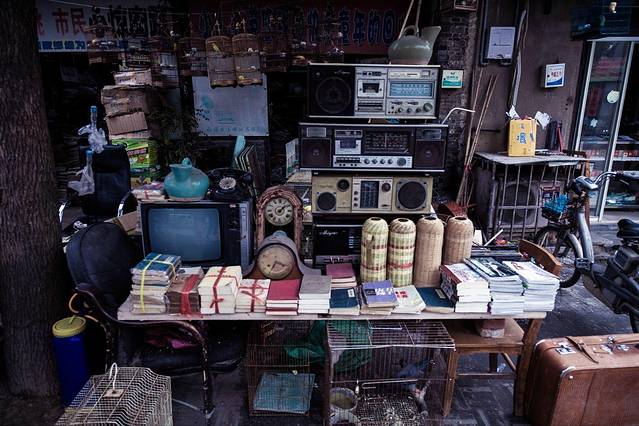 在皮市街看到有人摆摊卖些旧物事,女儿看着倒也新鲜。