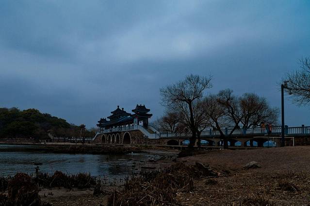 二十四桥由落帆栈道、单孔拱桥、九曲桥及吹萧亭组合而成,中间的玉带状拱桥长24米,宽2.4米,桥上下两侧各有24个台阶,围以24根白玉栏杆24块栏板。关于二十四桥到底指那座桥,至今众说纷纭。不如我们丢开那些烦琐的考证,来细细的品味杜牧诗句中那“只可意会,不可言传”的朦胧意境吧。
