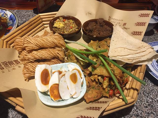 姥姥菜,徐州煎饼中间放很多菜。。。一人卷了一个就吃不掉了。徐州人的饭量好大啊,我们完全吃不掉。。。。