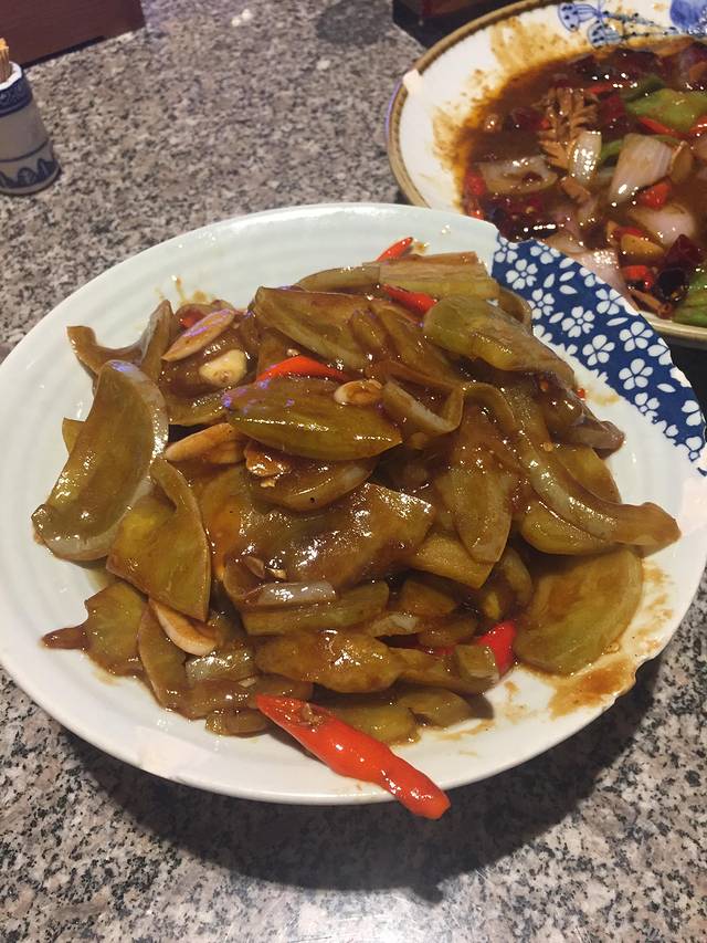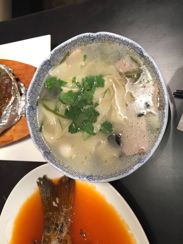 羊肉烩面片,羊肉汤味儿很足。面皮滑滑的,还很有劲。其实我个人感觉两个人搞一份面条就差不多了。根本吃不下。在南京吃桂满陇我们两个人都是点六七个菜的。。。。
