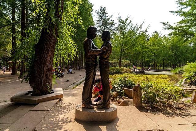 南怡岛位于韩国春川市南山面芳下里,原来并不是一个岛,但由于清平水库的修建,蓄水而形成北汉江上的宁静悠闲的小岛,岛上绿地茵茵,四周生长着像屏风一样郁郁葱葱的栗子树和白杨树