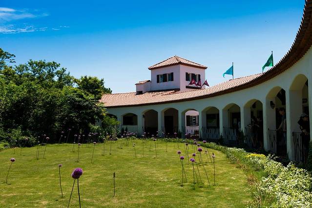 从建筑的风格看上去,这里别有一番地中海沿岸的风情,与虎鸣山周围秀丽的风景相映衬,美妙无比。