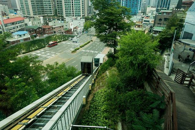 南山缆车自1962年运行,至今已有40多年的历史。从南山顶峰到缆车乘坐站,单程长达605米,运行时间约3分钟,最高可以升至距地面138米处,在缆车内首尔全城尽收眼底。