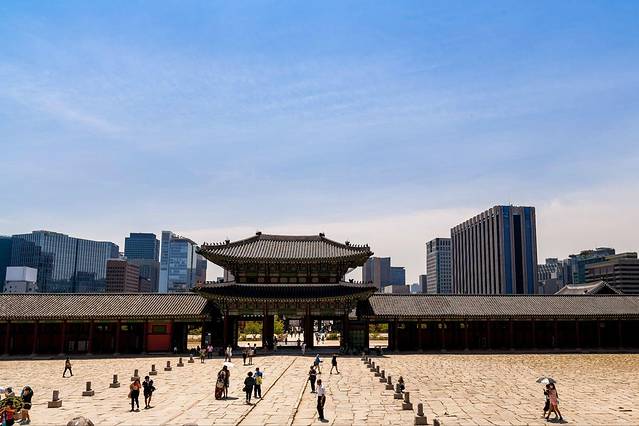 景福宫和他们的市政大楼紧密挨着,所以你能看到古典建筑和现代建筑的一个鲜明对比,已经足以站在那里感叹时代的变迁