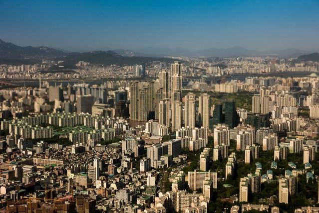 经过一个小时的飞行,已经到达了首尔的上空,一眼看去全是房子。