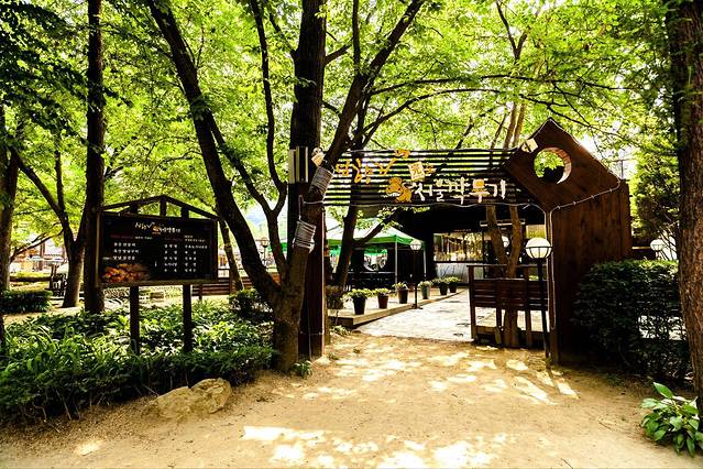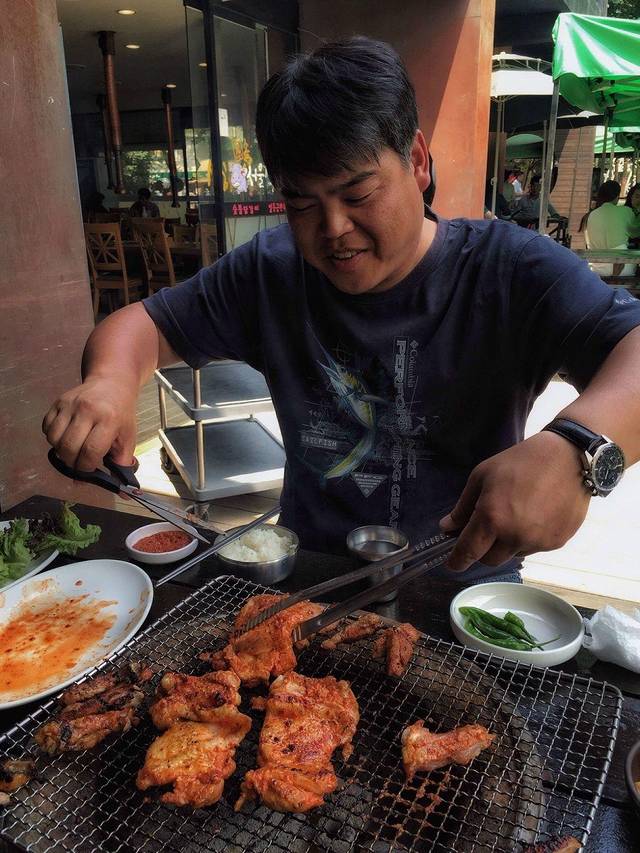 当然,欣赏风景的同时也不能忘了享受美味,大家知道韩国最出名的美食之一是春川鸡排!这里就是是一家春川烤鸡排的店
