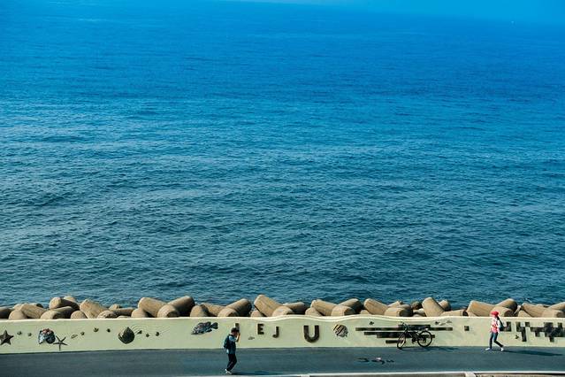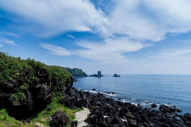 涉地可支又名涉地岬,是韩剧《蓝色生死恋》的主要外景地之一(我没看过,老婆没生孩子前是韩剧迷)。涉地可支(Sopjikoji)位于济州岛东部海岸的一端。“涉地”是这一地区古代时的名称,“可支”是济州岛方言,意思是向外突出的地形,看起来颇有几分“天涯海角”的味道。