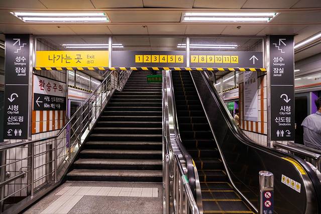 指示牌没中文显示,不如日本做的好。中文报站到是有,但站名是韩文的译音,听不大懂。