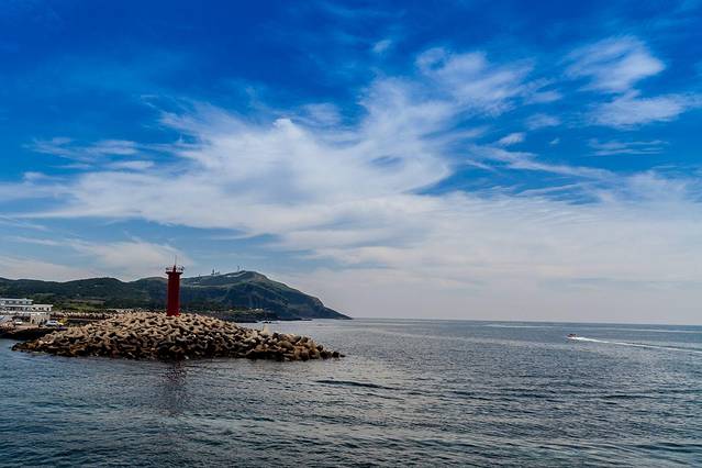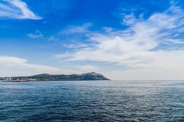 中午时分,打车去城山港,买票坐摆渡船去牛岛。牛岛是位于济州东部的一座小岛。整座岛屿状如卧牛,因此得名牛岛。另有珊瑚之岛、海女之岛、灯塔之岛等别名
