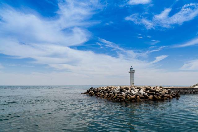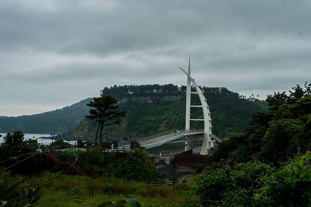 鸟岛新缘桥作为连接济州西归浦港与鸟岛的桥梁,它的造型源自济州岛上的传统木筏“Tewoo”的模样,十分优雅,使西归浦港又增添了一道靓丽的风景。