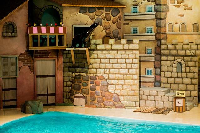 全程韩文讲解的海狮表演,但是基本能看明白,好人带着海狮追坏人,有剧情的海洋动物表演,而且还有很多鸭子企鹅神马的。